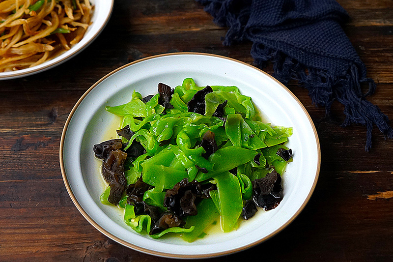 Rau diếp ngồng xào mộc nhĩ