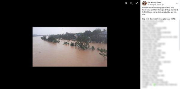 Bài kêu gọi quyên góp của ca sĩ Phi Nhung tháng 10/2020 - Ảnh: Chụp màn hình