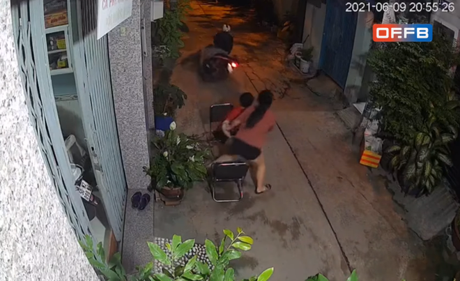 Camera của một nhà dân ghi lại cảnh một tên trộm lao thẳng xe máy vào con hẻm nhỏ giật điện thoại của người phụ nữ ngồi trước cửa. Hành động của anh ta nhanh đến mức chỉ vỏn vẹn trong vài giây chiếc điện thoại đã nằm trong tay.