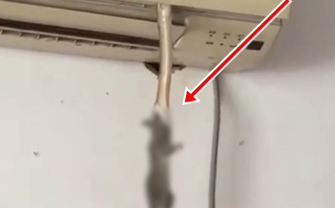 Hóa ra, con chuột đã chết kia có thể lơ lửng trên điều hòa là bởi có một con rắn đang cắn chặt lấy nó.