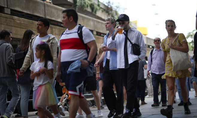 Người dân đi bộ trên đường phố London, Anh, hôm 5/6. Ảnh: Reuters.