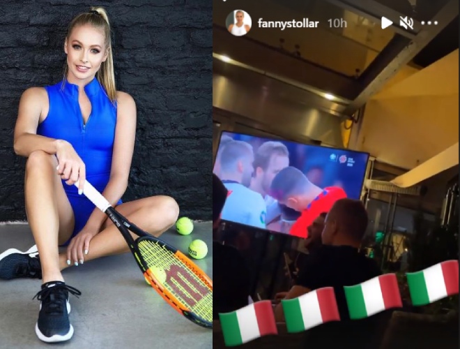 Mỹ nhân tennis Fanny Stollar dành tình yêu cho ĐT Italia ở chung kết EURO