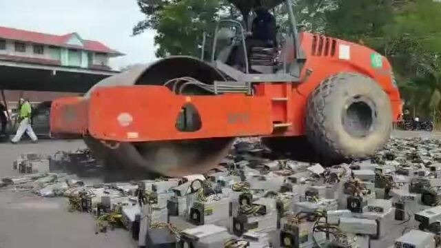 Trong video đăng ngày 16/7 bởi hãng thông tấn địa phương DayakDaily, cảnh sát thành phố Miri - một đô thị nằm trên đảo Borneo - đã xếp hàng các hệ thống máy tính khai thác Bitcoin và dùng xe lu để nghiền nát chúng. Những cỗ máy này được cảnh sát tịch thu từ những người cố gắng "đào" Bitcoin bằng nguồn điện trộm được trong thời gian từ tháng 2 đến tháng 4/2021.