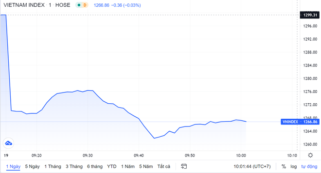 Đến 9h45, chỉ số VN-Index mất hơn 36 điểm (2,7%) xuống mốc 1.263 điểm với thanh khoản đạt 4.400 tỷ đồng. HNX-Index giảm hơn 8 điểm (2,7%) xuống 299 điểm với thanh khoản hơn 600 tỷ đồng. UPCoM-Index giảm gần 2 điểm xuống 84 điểm.