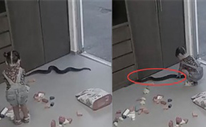 Cụ thể, bé gái ngồi chơi với đống đồ chơi dưới sàn nhà, bên cạnh là người phụ nữ bận rộn khi liên tục nghe điện thoại. Lúc này một con rắn lớn đang ngấp nghé ở cửa, sau đó trườn hẳn qua bậc thềm.