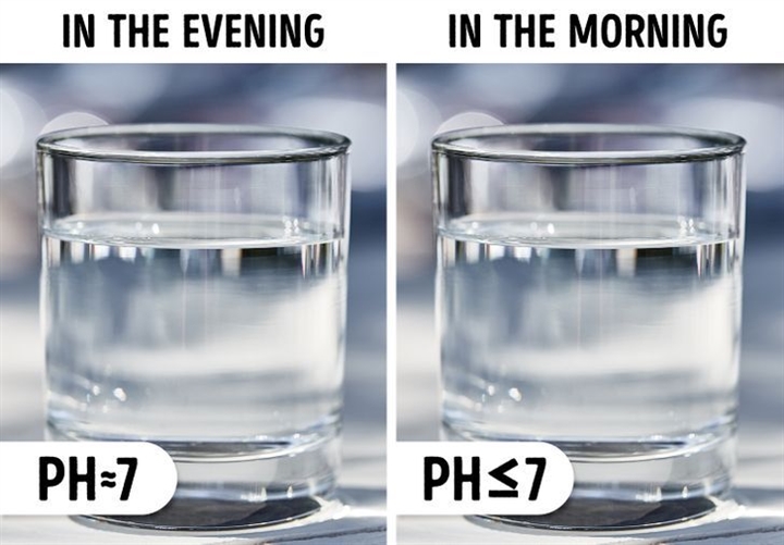 Việc để qua đêm, có thể khiến nước hấp thụ một lượng nhỏ carbon dioxide, làm thay đổi độ cân bằng pH. Do đó, nước trong cốc có thể mang tính axit nhiều hơn với độ pH thấp hơn. Điều này không ảnh hưởng đến sức khỏe nhưng có thể làm thay đổi hương vị của nước và không dễ uống.