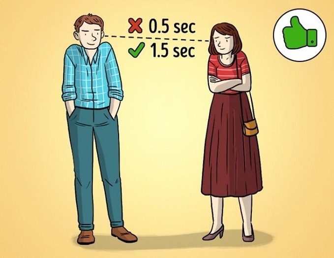 Nếu đối phương nhìn vào mắt bạn, giữ ánh nhìn lâu hơn bạn nghĩ và lặp lại hành động đó khi nói chuyện, chắc chắn rằng anh ấy/cô ấy thích bạn.