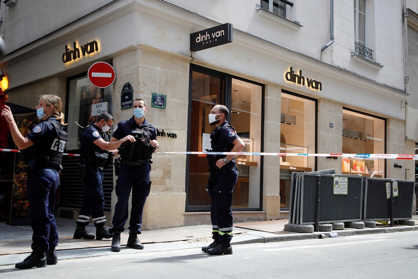 Vụ cướp xảy ra ngày 30/7 tại cửa hiệu trang sức Dinh Van tại trung tâm Paris, Reuters dẫn hai nguồn tin cảnh sát cho biết. Sau khi dùng súng, súng điện, và xịt hơi cay gây án, hai nghi phạm chạy bộ khỏi hiện trường.
