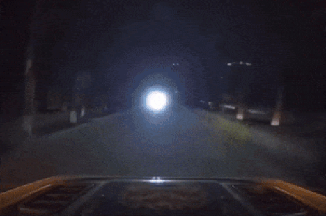 Tình huống được ghi lại bởi camera hành trình của một chiếc ô tô, khi đang lưu thông trên đoạn đường hai chiều. Video cho thấy, chiếc xe đối diện bật đèn pha và dù ở khoảng cách khá xa nhưng cũng đã đủ gây chói.