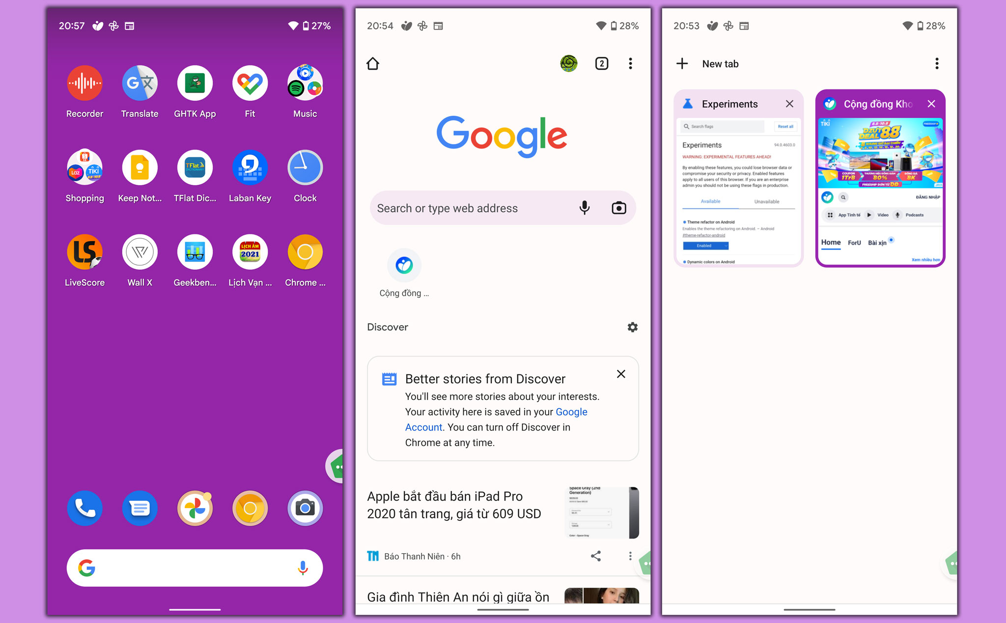 Kết quả, Chrome lúc này sẽ áp dụng màu nhấn của hệ thống ở giao diện, kết hợp với Gboard Material You nữa thì quá đẹp.