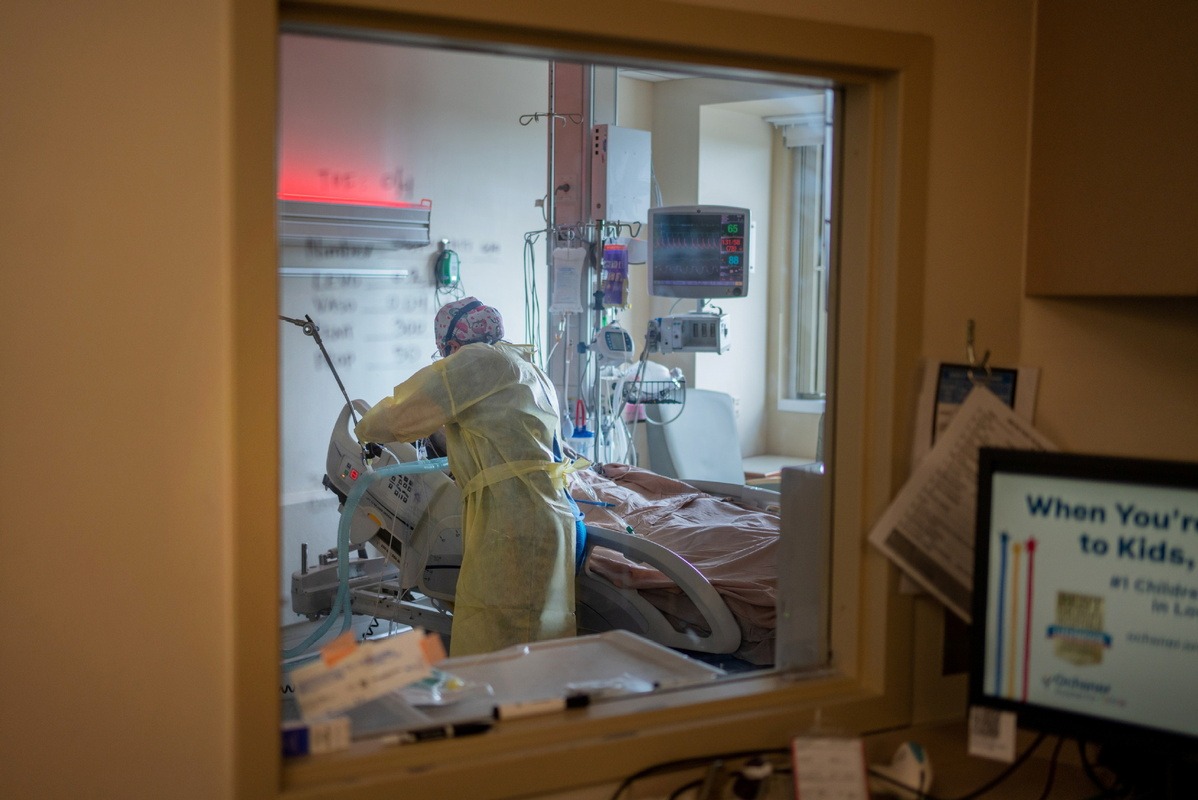 Medical staff treats a patient for coronavirus disease (COVID-19) at the Ochsner Medical Center in Jefferson Parish, Louisiana, US, Aug 10, 2021. [Photo/Agencies]
