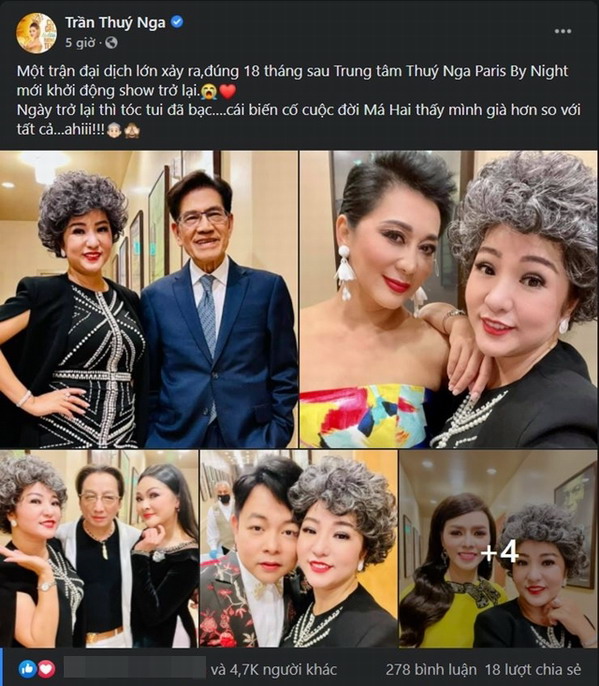 Trong những bức ảnh Thúy Nga chia sẻ, khán giả dễ dàng nhận ra hàng loạt nghệ sĩ nổi tiếng như Trường Vũ, Như Quỳnh, Quang Lê, Băng Tâm, MC Kỳ Duyên… và đặc biệt là MC Nguyễn Ngọc Ngạn. Đă quá lâu rồi công chúng mới lại nh́n thấy ông nên không thể không chú ư.