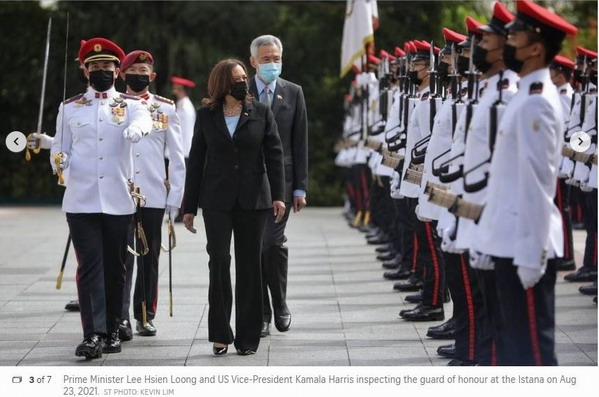 Singapore đă dành những nghi thức trọng thể nhất để đón chào Phó TT Kamala với đoàn xe hộ tống được báo chí Singapore tường tŕnh là có đến 28 xe hơi và 16 mô-tô cảnh sát hộ tống đi qua các con đường trong lộ tŕnh di chuyển hoàn toàn bị đóng.