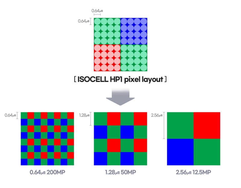 Cảm biến 200MP ISOCELL HP1 có kích thước 1/1.22 inch, trong đó kích thước của từng điểm ảnh đạt 0.64μm. Dựa trên khả năng phân tích ánh sáng môi trường, công nghệ ChameleonCell mới của Samsung sẽ có thể tự chuyển đổi giữa ảnh độ phân giải đầy đủ, nội suy 4 điểm ảnh (2 x 2) hoặc nội suy 16 điểm ảnh (4 x 4) để có được chất lượng ảnh tốt nhất.