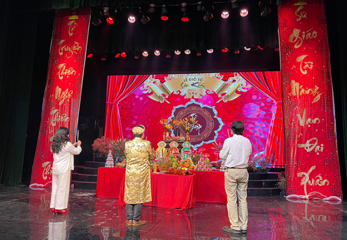 Nghệ sĩ Trịnh Kim Chi nhờ người quen dọn dẹp bàn thờ bên sân khấu ở quận 6, làm một mâm chay, xin phép cho các nghệ sĩ được cúng tại nhà. "Chúng tôi cũng có hương, hoa, trà, quả đầy đủ, cái thiếu duy nhất là không khí rộn ràng, sum vầy của các anh chị em như các năm", chị cho biết.