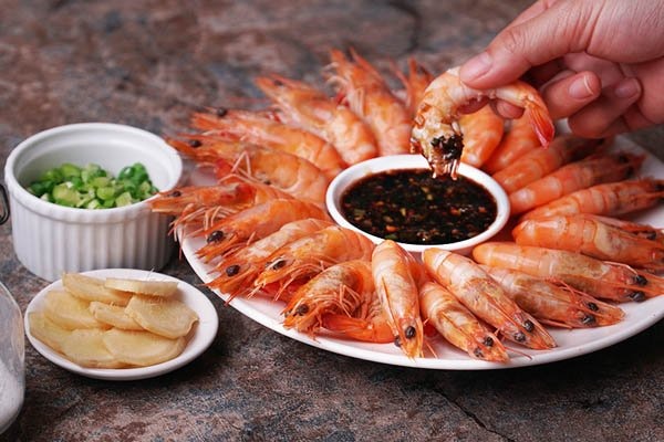 Khi tôm chín bạn vớt tôm ra đĩa, chuẩn bị nước chấm là có thể thưởng thức được rồi.