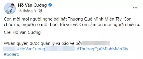 Còn trên Facebook cá nhân, bài đăng gần nhất của nam ca sĩ là từ tháng 4/2021.