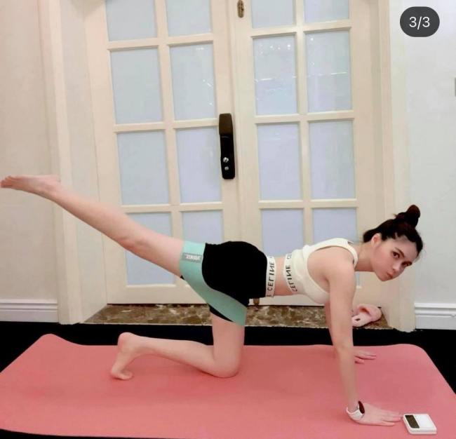 Ngoài các bài tập thon gọn ṿng eo, vợ đại gia ngành nhựa c̣n tập luyện những bài tập săn chắc toàn thân khác.