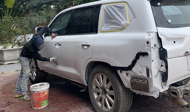 Được biết, tất cả phụ tùng thay thế đều là hàng ‘’zin’’. Bên cạnh đó, công đoạn phức tạp khi “lên đời” LX570 mới chính là việc làm đồng lại vị trí cột D phía sau – một chi tiết khác biệt giữa hai đời LX570 trước và sau nâng cấp facelift.​ Sau khi làm đồng, cột D được lắp đặt kính viền và crôm mới, ngoài ra toàn bộ cửa cốp sau đã được thay bằng cửa mới.