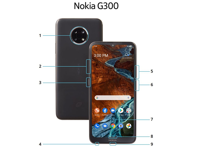 Dự kiến, Nokia G300 có màn hình LCD 6,57 inch với độ phân giải 720 x 1.600 px (tỷ lệ khung hình 20: 9). Phía sau là thiết lập 3 camera, bao gồm: camera chính 16 MP, camera góc siêu rộng 5 MP và cảm biến độ sâu 2 MP; phía trước là camera selfie 8 MP.