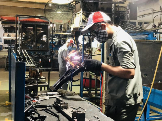 Nhiều DN duy trì được sản xuất "3 tại chỗ' nhờ đảm bảo các tiêu chí về phòng chống dịch COVID-19. Ảnh: PHONG ĐIỀN