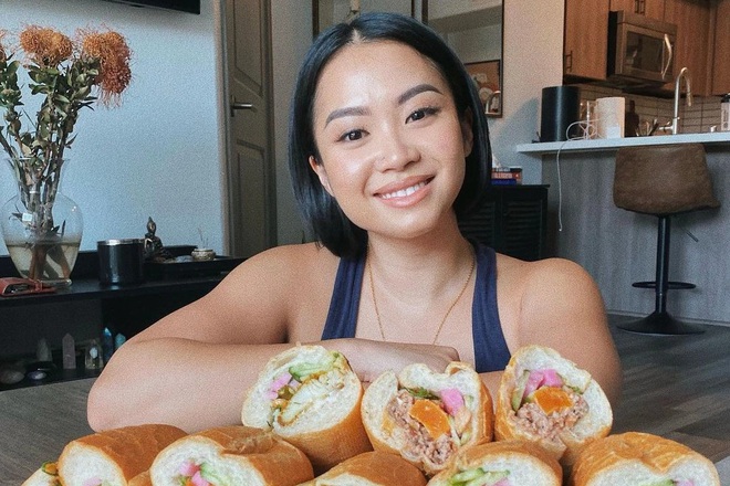 Tway Nguyen chụp hình cùng món bánh mì (Ảnh: Instagram/Twaydabae).