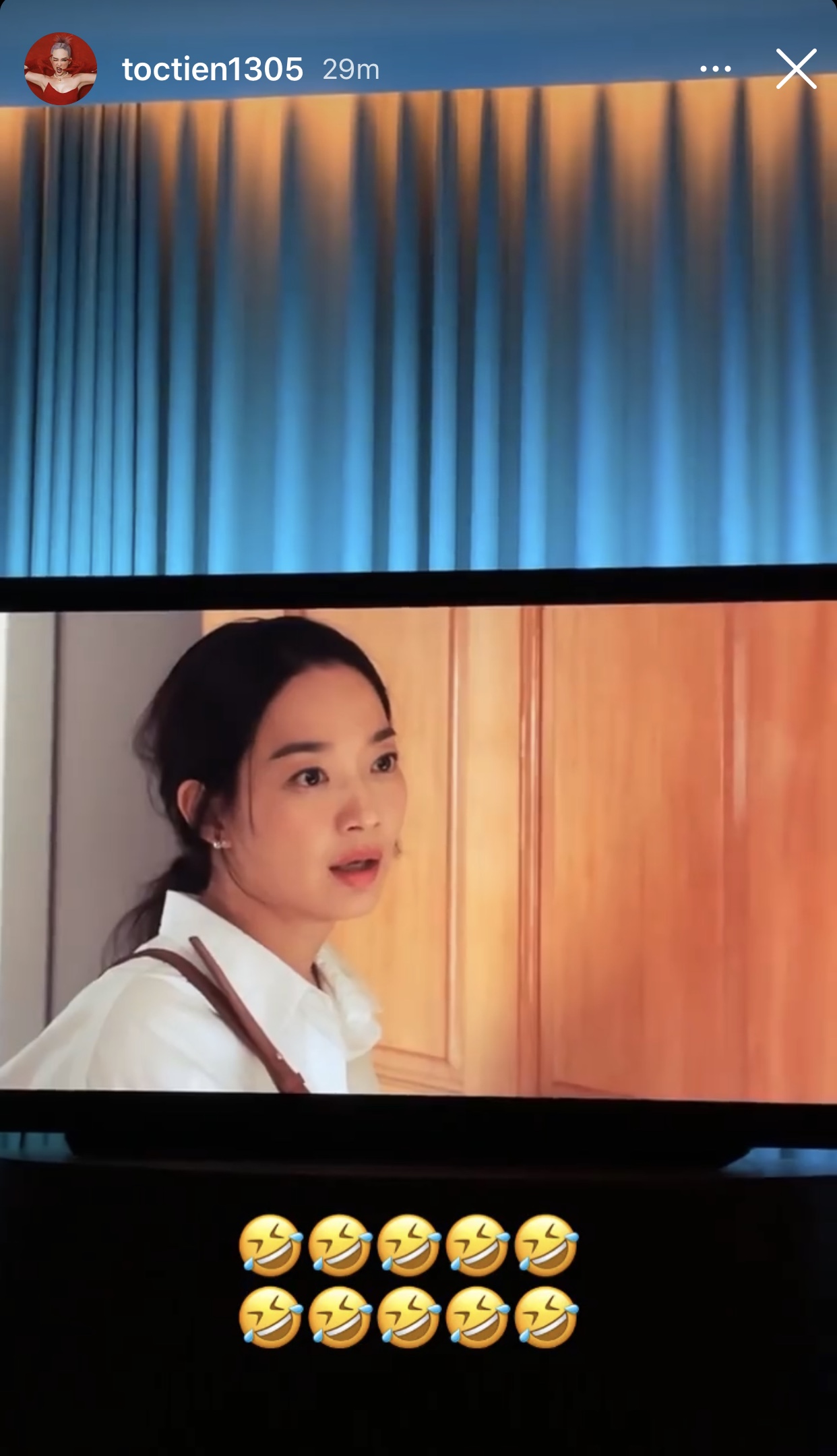 Sau khi quan điểm nhận về loạt ý kiến trái chiều, tối 11/10, Tóc Tiên đã có động thái đầu tiên trên Instagram cá nhân. Nữ ca sĩ Ngày Mai vẫn đang thư giãn, vui vẻ thoải mái xem phim Hàn Quốc tại gia. Bà xã Hoàng Touliver còn hài hước so sánh bản thân với nữ chính trong phim: "Vừa đi vừa nói chuyện với cây và con đường. Tôi còn làm nàng tiên cá trên bãi cát đúng 12 giờ đêm". Sau khi khoá Facebook, Tóc Tiên vẫn đang tận hưởng cuộc sống riêng của mình.