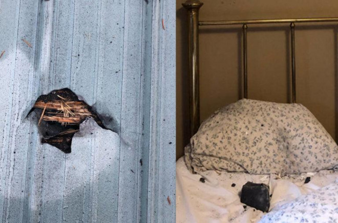 “Tôi giật mình vì tưởng có ai đó đột nhập vào nhà mình hoặc có một vụ nổ súng”, Hamilton nói. “Tôi nhảy xuống giường và bật đèn lên thì phát hiện một tảng đá màu đen nằm ngay trên gối.”