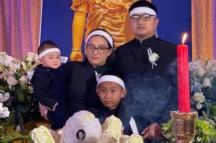 Mở đầu tin sao Việt là hình ảnh về gia đình con gái Phi Nhung. Trong bức hình được người thân chia sẻ, 4 người nhà Wendy Phạm u buồn trước bàn thờ tại lễ tang đưa tiễn mẹ đẻ về nơi an nghỉ cuối cùng. Đôi mắt ngơ ngác của 2 cháu ngoại cố ca sĩ khi đứng chịu tang bà khiến người nhìn xót xa.