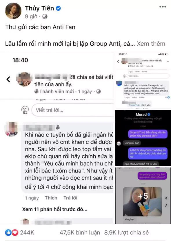 Thuỷ Tiên "sốc" với group antifan của mình