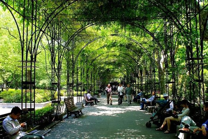 Công viên Fuxing là một trong những công viên đẹp nhất Trung Quốc. Dạo bước trong công viên Fuxing bạn như đang lạc vào không gian kiến trúc Pháp cổ kính với bóng cây râm mát và những tòa biệt thự cổ. Nơi đây cũng là nơi quy tụ những nét văn hóa đặc sắc của người Trung Quốc, bạn sẽ dễ dàng bắt gặp hình ảnh những người lớn tuổi đang ngâm nga một bản opera tiếng Trung, những chàng trai vận áo quân nhân xưa vừa đi bộ vừa xách cái lồng chim hay diễn kịch ngoài trời vô cùng độc đáo.