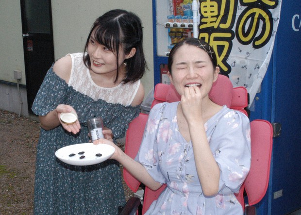 Hai người nổi tiếng địa phương là Rika Miyaki (trái) và Akari Tsukamoto (phải) cũng đến nếm thử sản phẩm từ chiếc máy (Ảnh: Yoshinobu Itakura)