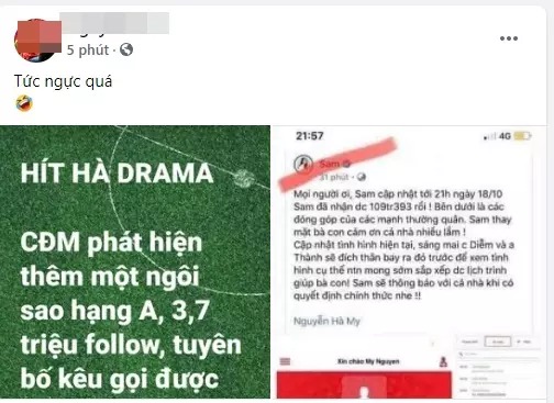 Sau Đông Nhi, Nhật Kim Anh, vợ chồng Thúy Diễm - Lương Thế Thành..., diễn viên Sam cũng vừa bị lôi vào cuộc.