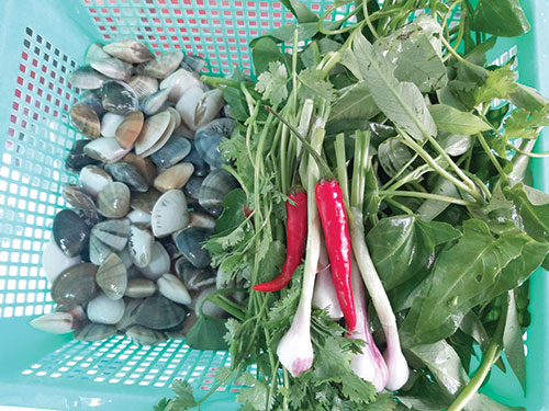 Còn vào những ngày biển lặng, nước trong, anh em tôi được mẹ cho phép đi cùng với ba để tắm biển và mò bắt chang chang ven bờ đem về nhà nấu canh rau muống, mồng tơi, cải… có tác dụng giải nhiệt cơ thể, rất tốt cho sức khỏe, nhưng số một vẫn là món canh chang chang nấu với rau muống. Với món canh dân dã này, đối với những người phụ nữ giỏi việc bếp núc ở miền biển như mẹ chỉ một loáng là có ngay nồi canh ngon ngọt. Chang chang từ biển mang về chỉ việc rửa sạch bỏ vào nồi luộc vừa đủ há miệng, bỏ vỏ lấy phần thịt, còn nước luộc thì dùng ray lược cho sạch cát. Sau đó đun sôi phần nước luộc và cho rau muống xắt khúc vừa ăn vào nấu chín. Riêng phần thịt chang chang sau khi được bóc ra đem rửa sạch lại bằng nước, để thật ráo, cho mỡ heo vào chảo nóng lên rồi tao sơ cùng với các loại gia vị hành tiêu, muối, mắm và bột ngọt, tiếp đó cho vào nồi cùng với rau muống nấu chín. Khi nồi canh sôi bùng trở lại, chỉ việc rắc thêm ít hành ngò xắt nhuyễn rồi nhấc nồi xuống bếp. Như thế là đã xong món canh chang chang nấu với rau muống thật ngon, đậm chất hương vị biển.