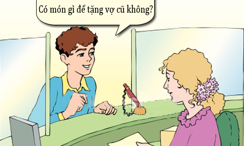 - Anh muốn tặng cho vợ hay bạn gái ạ? Anh cứ yên tâm, cửa hàng chúng em có đến hàng trăm sản phẩm, anh muốn mua gì cũng có cả.