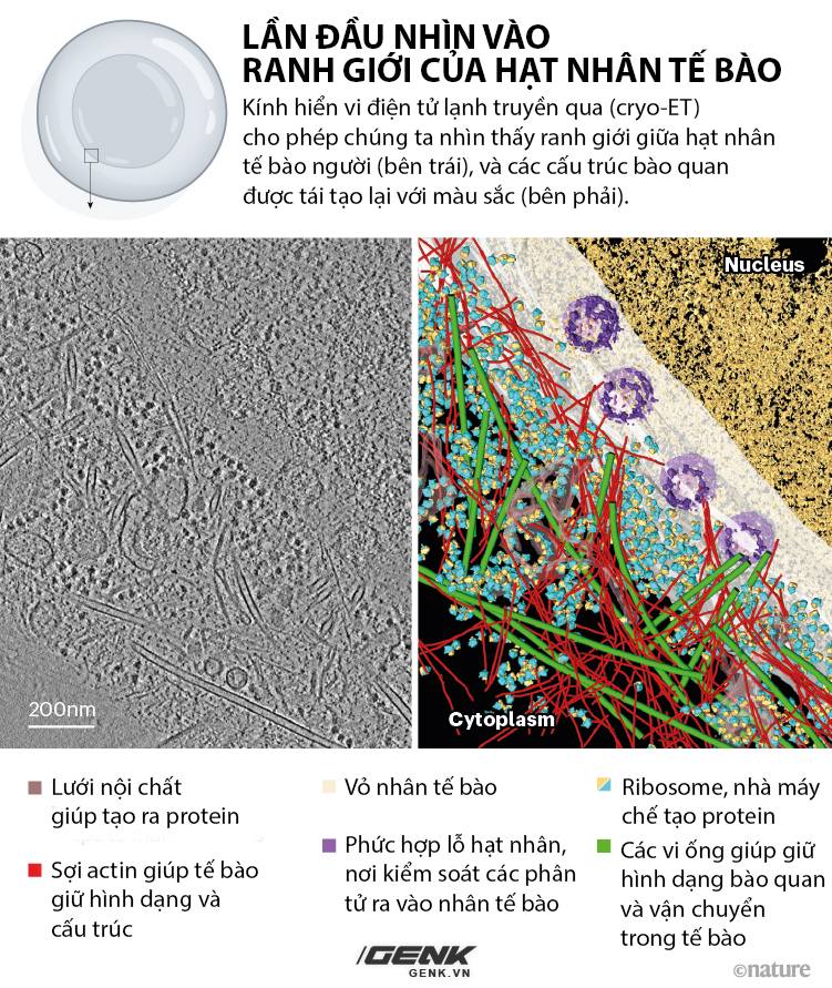 Hình ảnh tế bào và bên trong một tế bào chụp với kính hiển vi siêu phân giải và cryo-ET.