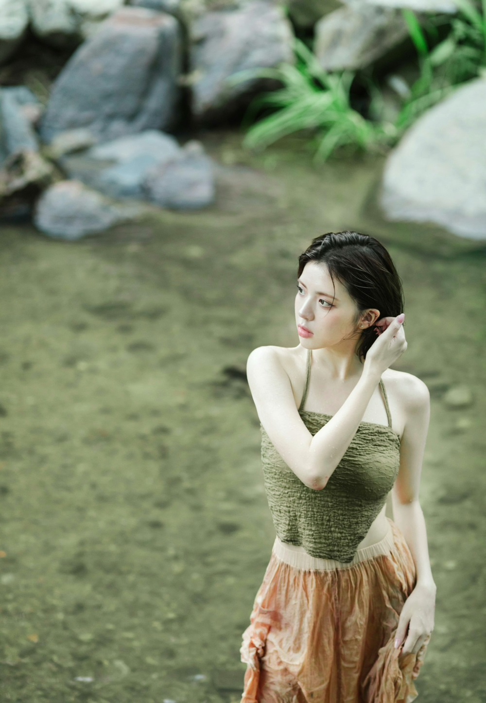 Xu hướng chụp hình lấy bối cảnh tự nhiên với rừng, núi, sông, suối ở Trung Quốc khá phổ biến. Tùy thuộc phong cách cá nhân mà mỗi người mẫu sẽ mặc những kiểu đồ khác nhau. Có người chọn thiết kế hiện đại như áo tắm, người khác mặc váy lụa, váy voan mỏng nhẹ.
