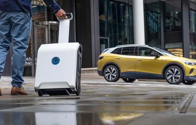 Bộ sạc dự phòng được thiết kế như một chiếc vali giúp người dùng có thể đặt gọn gàng trong cốp xe (Ảnh: 20minutes).