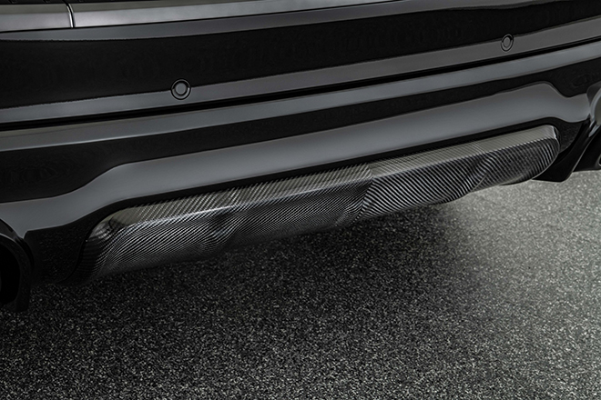Đuôi xe ngoài thay thế các logo của Mercedes bằng logo Brabus, bộ khuếch tán cũng được thay thế bằng loại mới dùng sợi carbon, ốp ngoài ống xả sơn đen đồng bộ với thân xe giúp diện mạo chiếc Mercedes-Maybach GLS 600 hầm hố hơn.