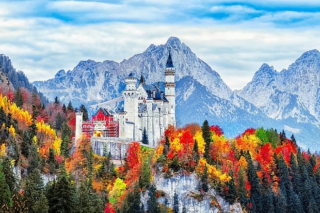 Khi thu gõ cửa vùng núi Bavaria nước Đức, những chiếc lá thay đổi sắc màu với tốc độ nhanh chóng. Cả triền núi như tỏa sáng với màu neon rực rỡ từ đỏ đến vàng. Lâu đài uy nghi, cổ kính ẩn giữa thế giới sắc màu nơi núi cao trở thành bức tranh huyền ảo tựa thiên đường. (Ảnh: Matador Network)