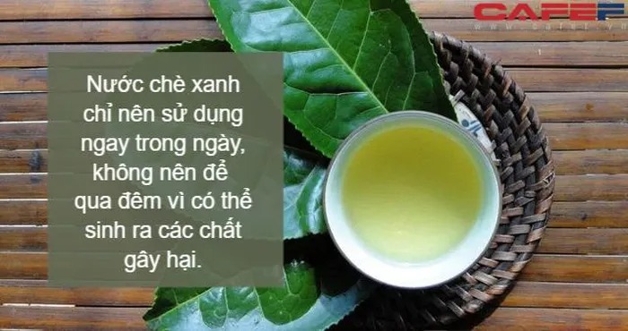 Do đó, người ta khuyến nghị rằng, chè xanh nên hãm, pha vào buổi sáng sớm và chỉ sử dụng trong ngày. Nếu buổi tối còn chưa uống hết, để tránh lãng phí, mọi người cũng có thể tận dụng để súc miệng, súc họng, rửa mặt... vì trong nước chè xanh có nhiều chống ôxy hóa, chống viêm, sát trùng và giảm đau răng.