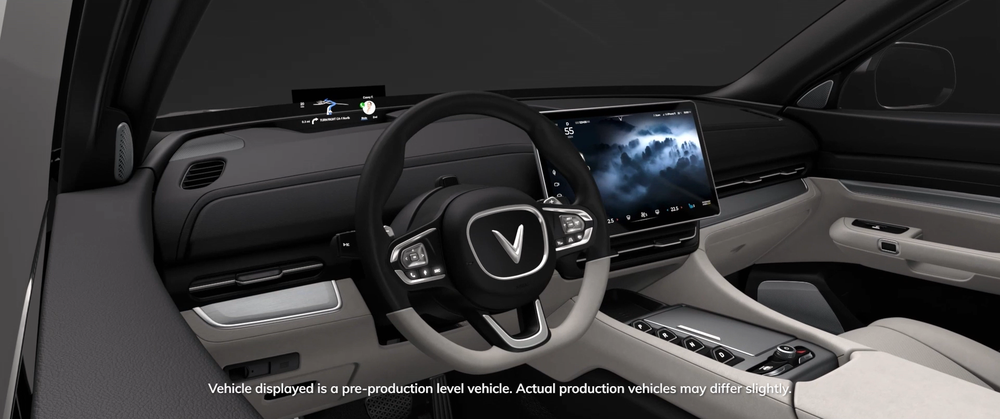 Tuy nhiên, dù vẫn nằm trong tầm mắt của người lái, màn hình đặt lệch như vậy vẫn có thể khiến người lái phải quay sang nhìn, gây mất tập trung và nguy hiểm. Do vậy, giải pháp của VinFast là sử dụng một màn hình Head Up Display (HUD) ở ngay trước mắt người lái.