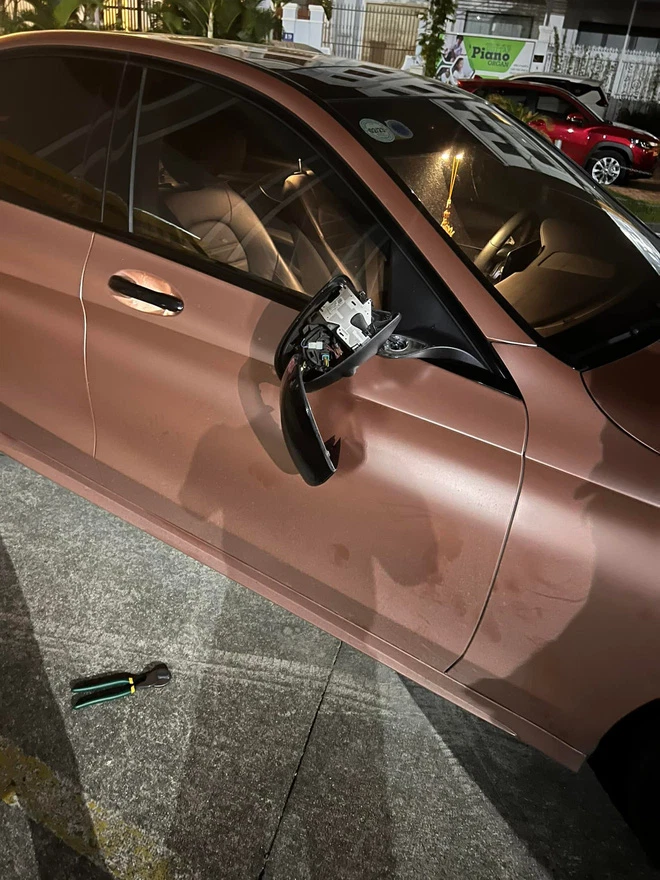 Xe của TiTi sau khi bị trộm gương lúc 3 giờ sáng