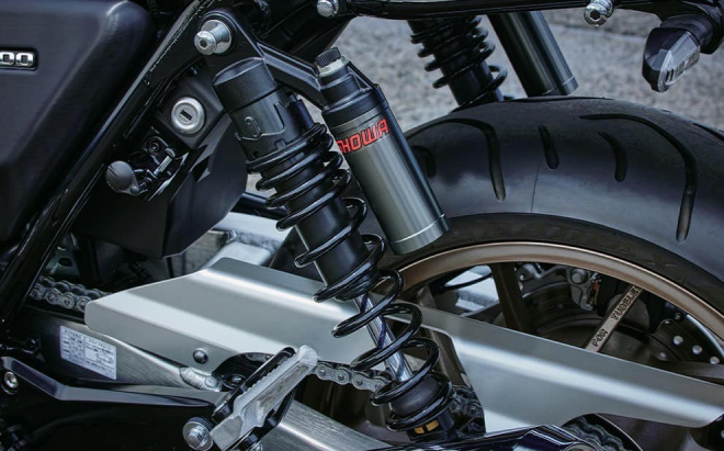 Mặc dù là dòng xế cổ điển nhưng CB1100RS mới có nhiều trang bị hiện đại. Nổi bật là hệ thống treo trước loại Showa lớn 43 mm với các vavle nén kép và khả năng tùy chỉnh tải trước. Trong khi giảm xóc sau là loại giảm xóc kép Showa với bình dầu phụ, có thể tùy chỉnh với khả năng tải và nén tốt.
