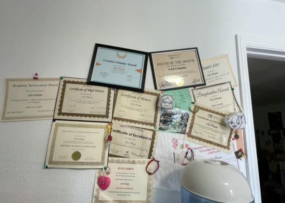 Phạm Thanh Thảo tự hào khoe bằng khen của con cô. (Ảnh: Cắt từ clip)