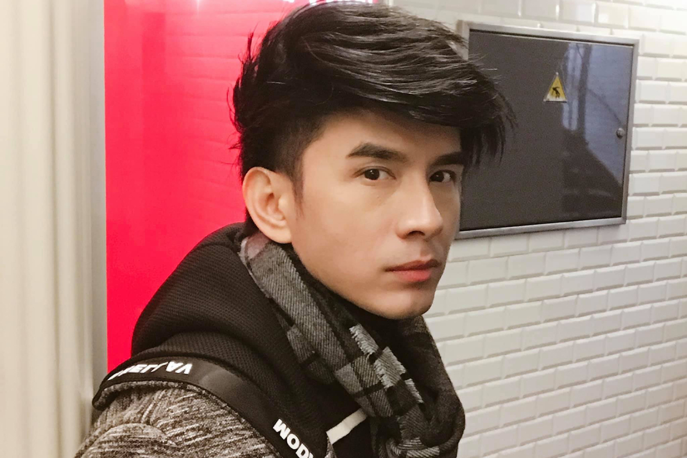 Thỉnh thoảng, anh đổi sang kiểu tóc mái vuốt lệch một bên để tôn nét lãng tử.