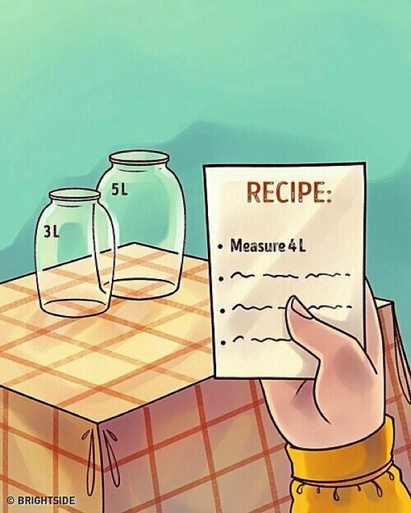 Một can 5l và một can 3l ,hỏi làm thế nào lấy được 4l nước từ bể?