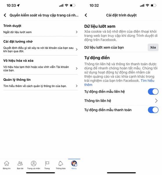 Xóa cache của ứng dụng Facebook trên iPhone. Ảnh: MINH HOÀNG