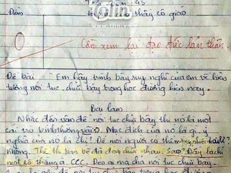 Lời bình: Có lẽ em này chuyên đọc những truyện tranh kiểu như: "Ðấm! Ðá! Hự ! Bụp!..."