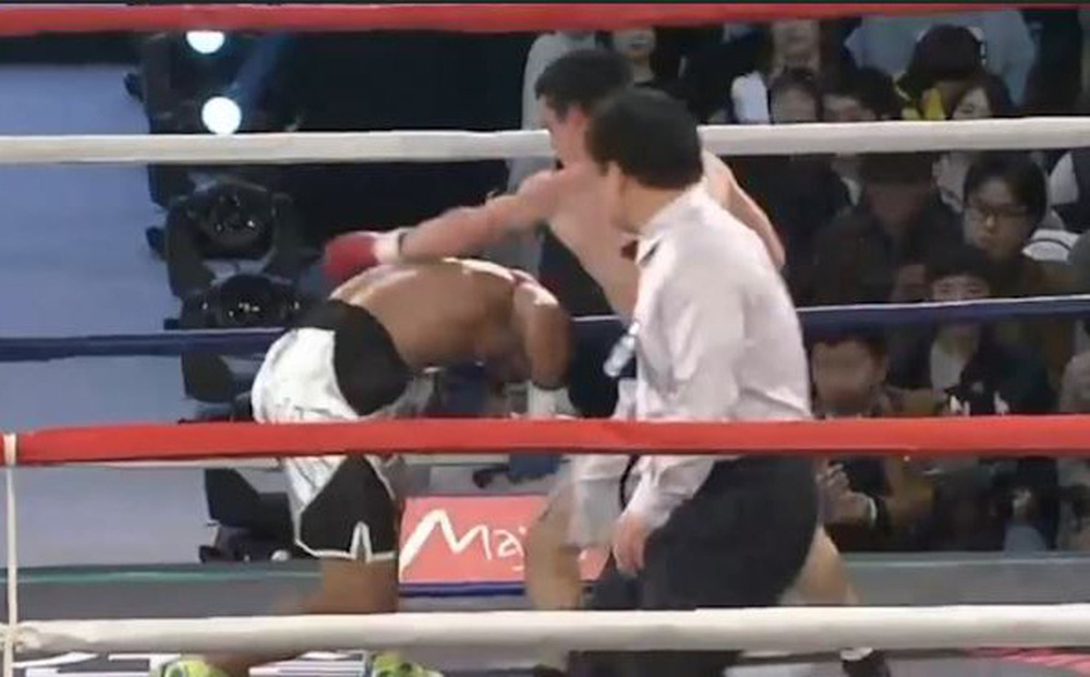 Màn chơi xấu của Wulan Tuolehazi (găng đỏ) lên võ sĩ Việt Nam (găng xanh)